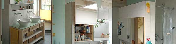 Raumtrennendes Wandelement mit integriertem Spiegelschrank und