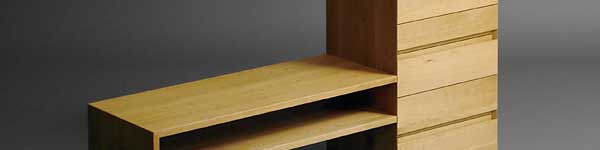 Schubladen ebenfalls auf Gehrung mit Griffnuten.