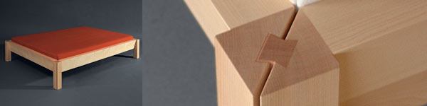 verschiedener Hölzer noch verstärkt wird. Die Bettladen aus Massivholz wirken